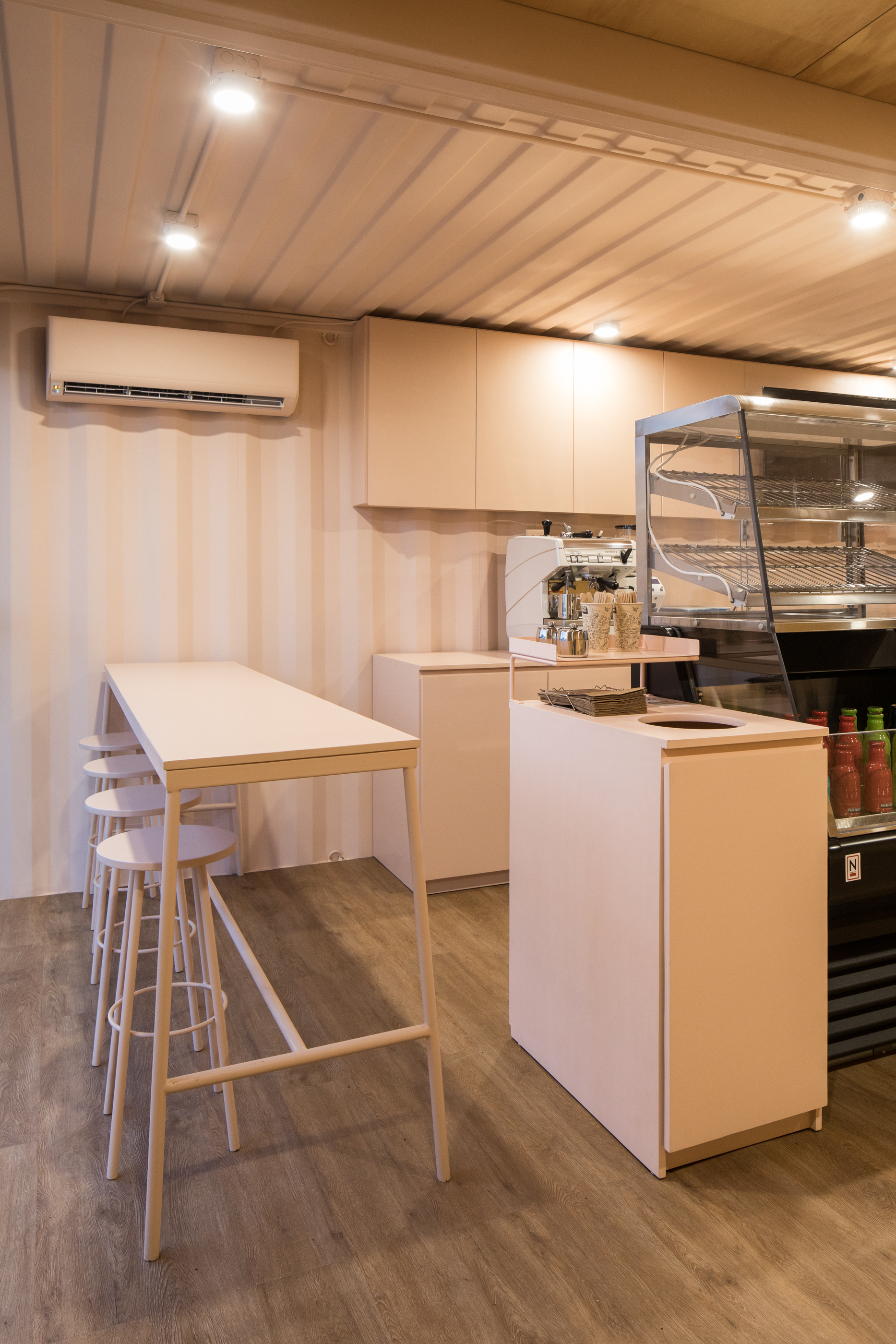The store is built inside a container, located in a dog park in Barrio Escalante, San José. We wanted to create a contrast between the outside look of the Mini Market -which is black-, with earthy and bright tones of the inside of the store. This is the first location in CR to sell dog food in bulk, so we created the shelving to support the food dispensers adequately. For us, it was very important to represent the organic, slow approach of Mini Market, this is why we chose pine plywood as our main material, to create a raw but clean atmosphere.